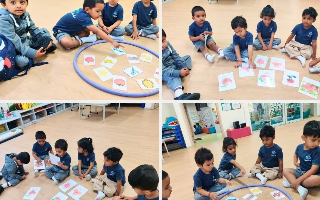 16th February 2026Our little learners had a fun and colorful day! They worked together to identify primary colours — red, blue, and yellow — and named objects around them.