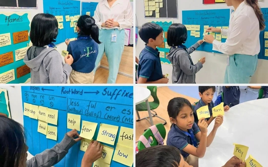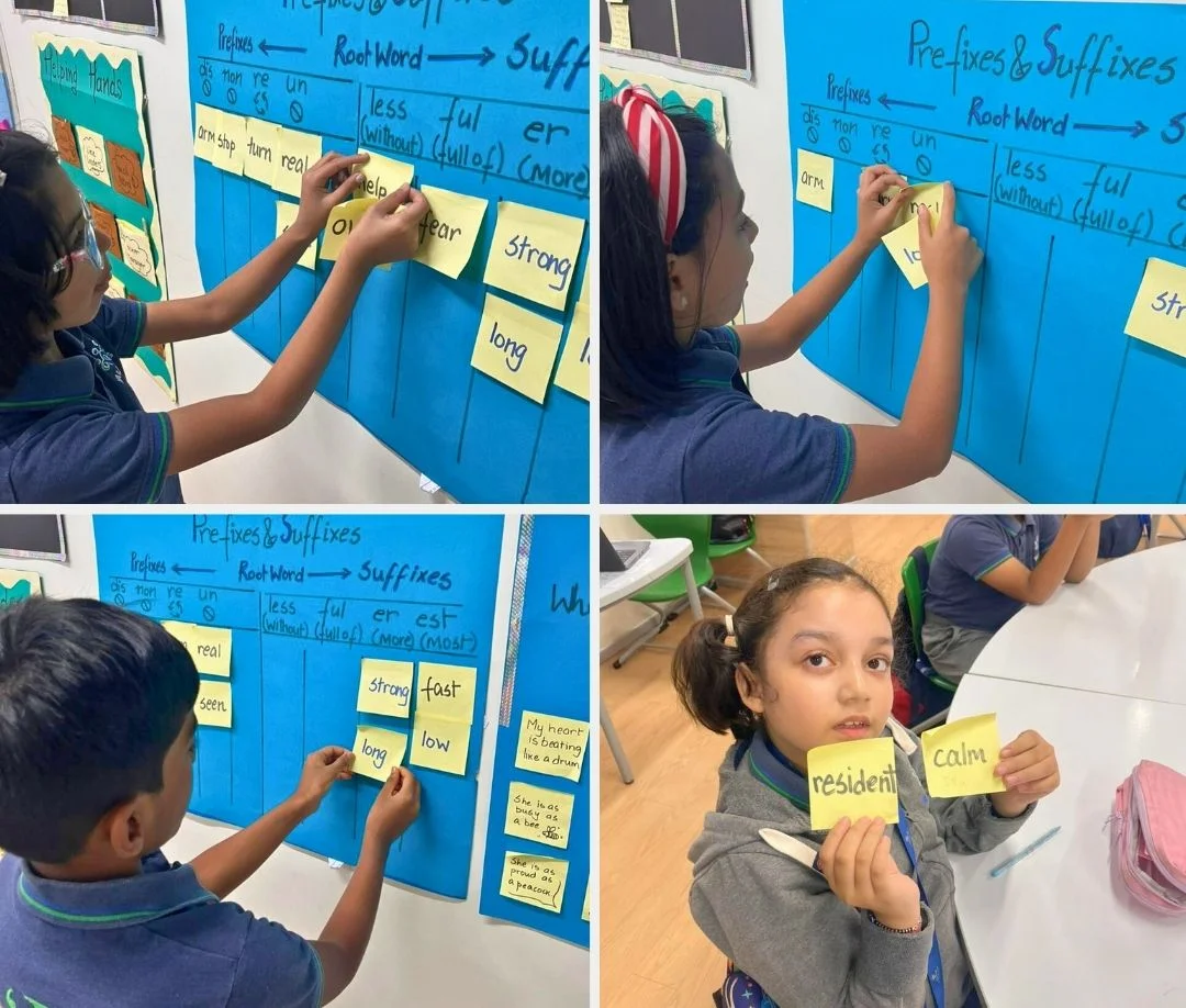 The class also explored the meanings of the newly formed words and practised using them correctly in sentences. This interactive activity encouraged collaboration, critical thinking and vocabulary development.