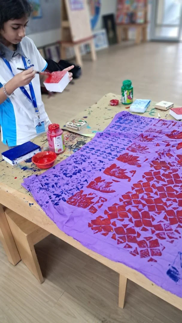 This hands-on exploration not only nurtured creative expression and design thinking but also gave learners an appreciation for India’s rich block printing heritage, reimagining traditional techniques through modern materials and perspectives.