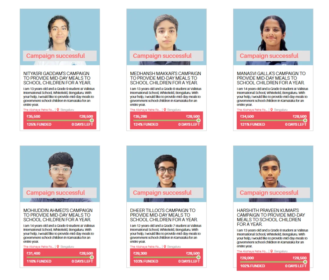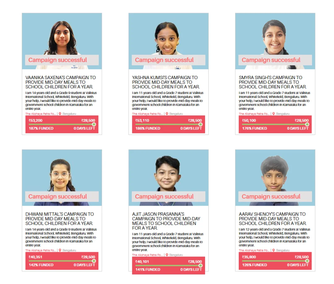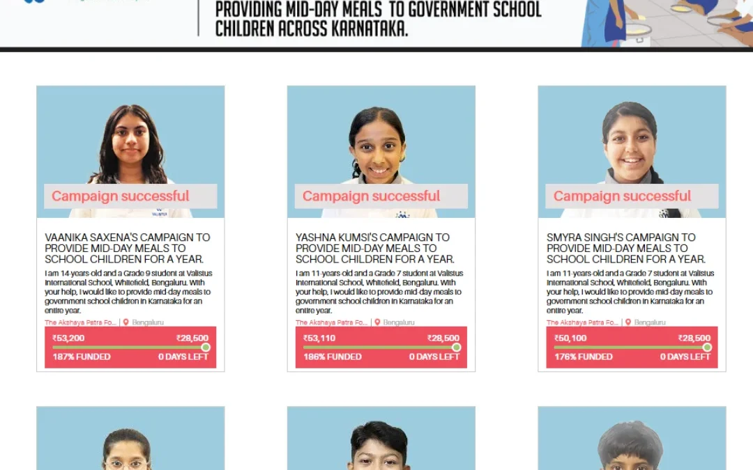 As the campaign concludes, our students will soon be visiting partner schools with Akshaya Patra to witness the distribution of mid-day meals and see their efforts create meaningful impact.