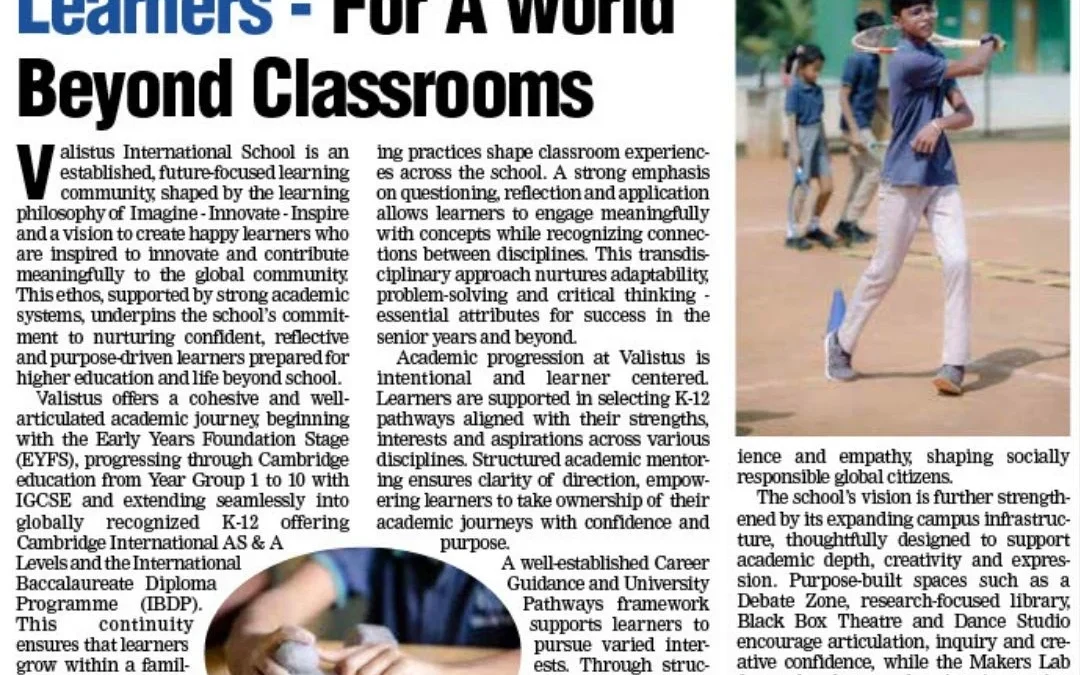 This recognition in The Times highlights Valistus’ progressive vision of education that extends beyond traditional boundaries. By fostering innovation, global perspectives, and real-world readiness, we continue to shape learners prepared to lead with confidence and purpose.