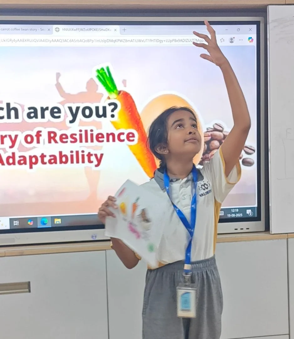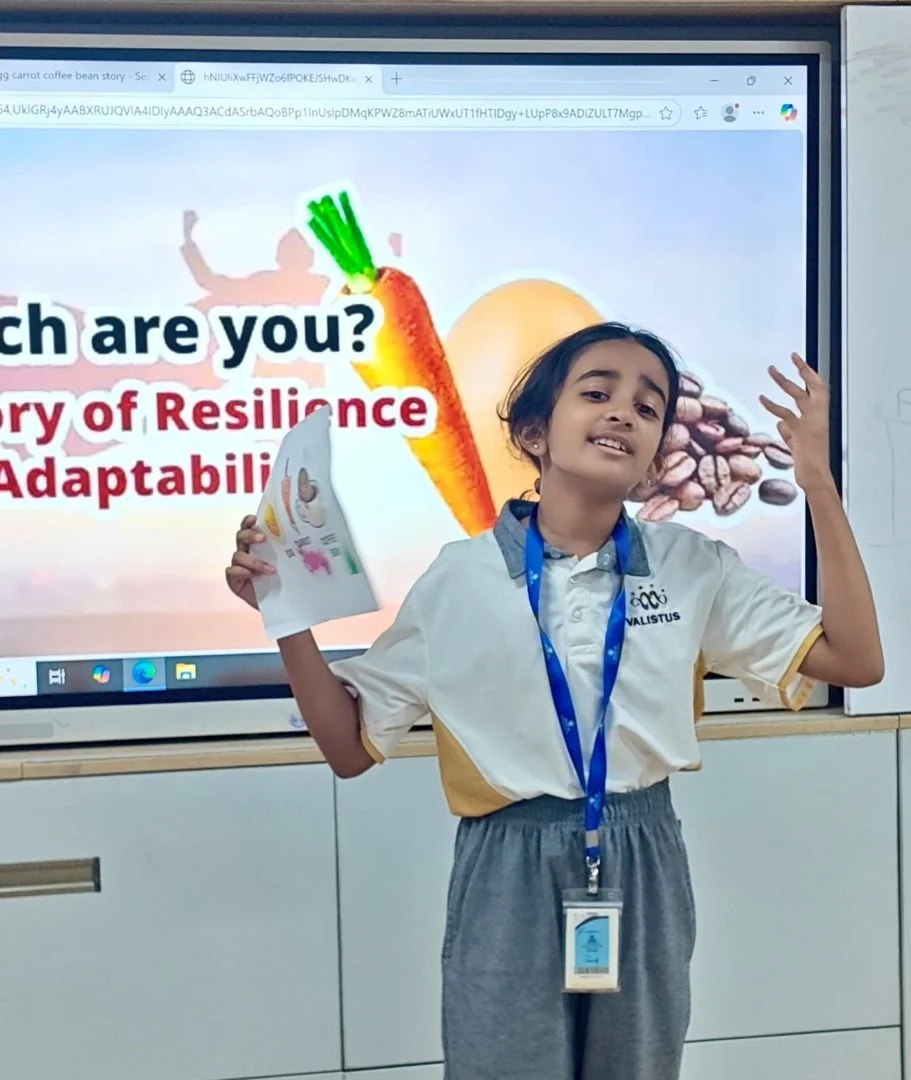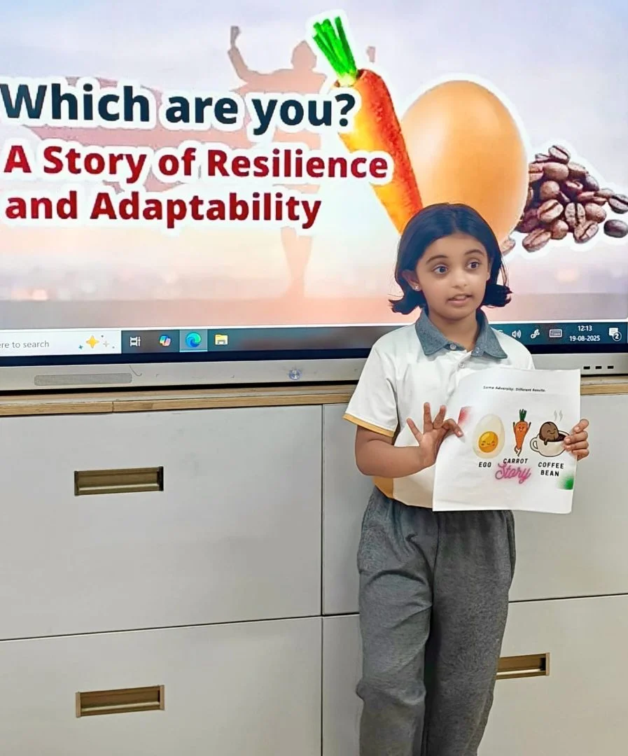 The session sparked thoughtful conversations around resilience and adaptability. Learners were able to vividly relate the metaphor of boiling water to real-life situations, identifying moments when they themselves had felt like the carrot (softened by challenges), the egg (hardened by adversity), or the coffee bean (transforming the environment around them). Their ability to connect these symbols to personal experiences was both insightful and heart-warming. Learners participated in expressive role play, using gestures, voice modulation and movement to bring each character to life.