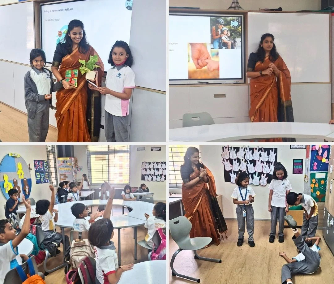 The “Parent as a Resource” session in Year Group 2 at Valistus International School was an enriching experience for all. We were pleased to welcome Ms. Divya Shree Kota, a software professional, who conducted an engaging session on essential safety practices at home, in school, around electrical appliances, near fire, on the road and during outdoor play.
